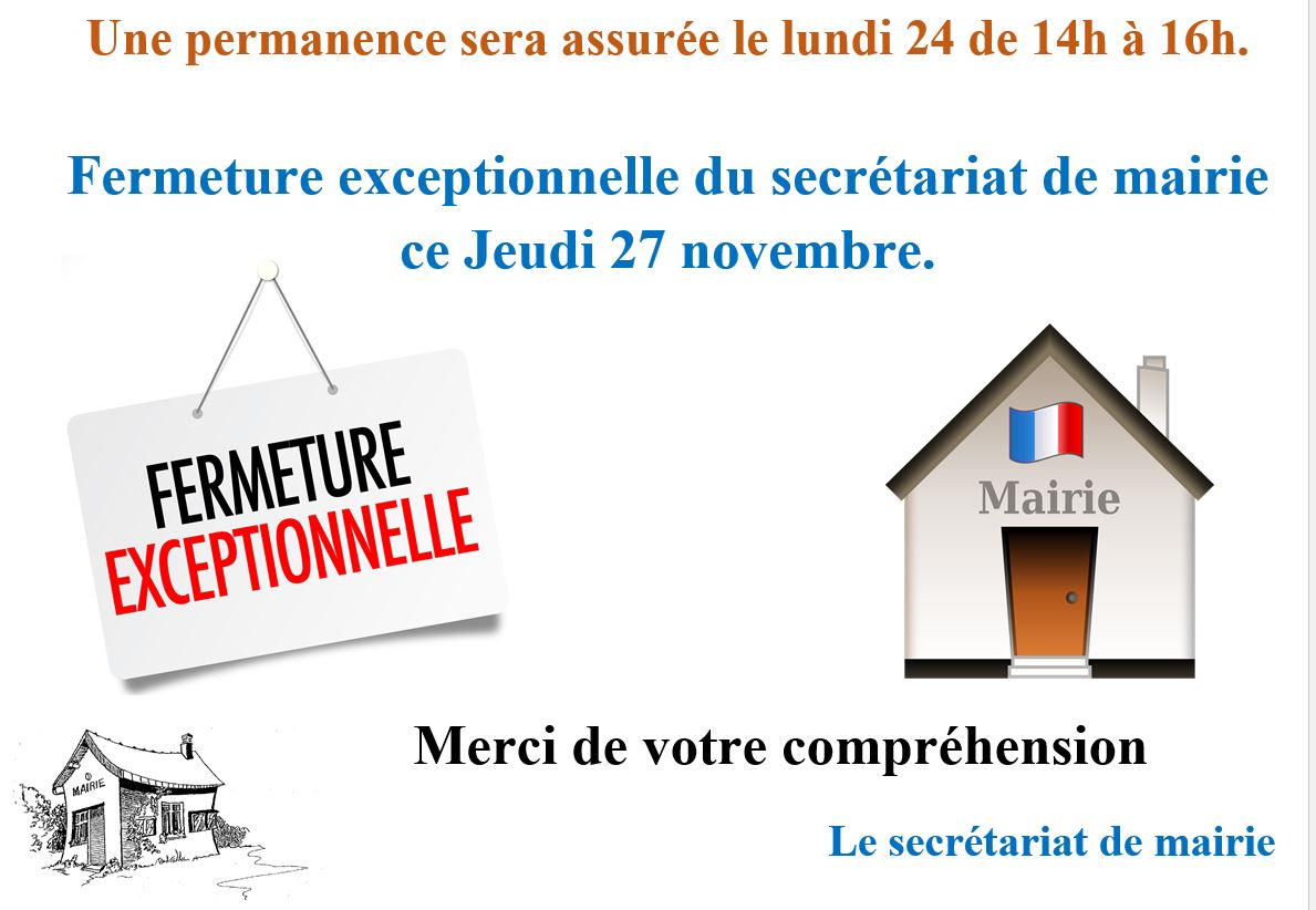 Votre mairie sera exceptionnellement fermée le jeudi 27 novembre.